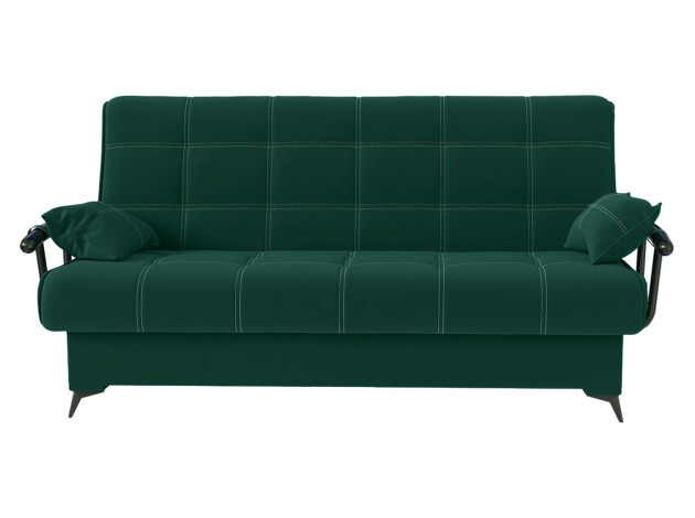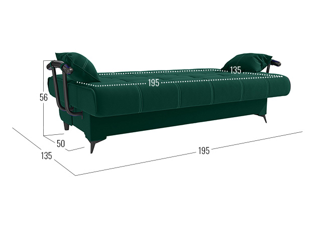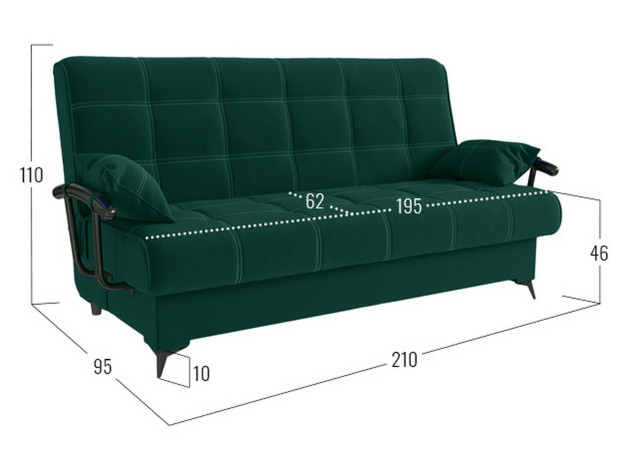 Прямой диван Теон с подлокотниками — комфортабельная и практичная модель с привлекательным дизайном. Двойная прострочка, подлокотники с подушками и высокие элегантные ножки создают запоминающийся облик. Механизм трансформации раскладывается не касаясь пола, поэтому не царапает покрытие и не сдвигает ковер. Бельевой ящик создает дополнительное место для хранения.