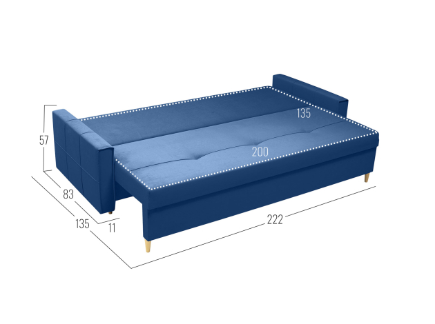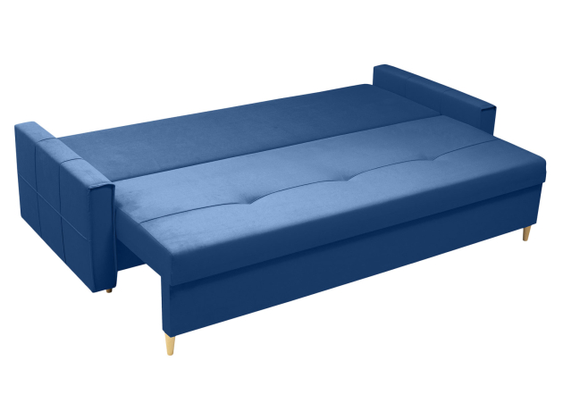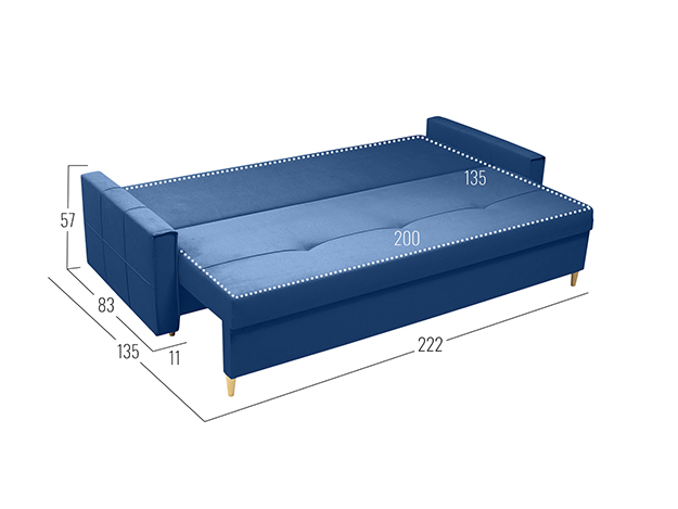 Прямой диван Толедо — простая и основательная модель с привлекательным дизайном, которую можно установить не только вдоль стены, но и в любой части комнаты, создав эффектное зонирование. Раскладной механизм быстро превращает диван в ровное спальное место, а просторный бельевой ящик создает дополнительную нишу для хранения постельных принадлежностей. Небольшие ножки визуально облегчают конструкцию дивана, также упрощают процесс уборки под ним.