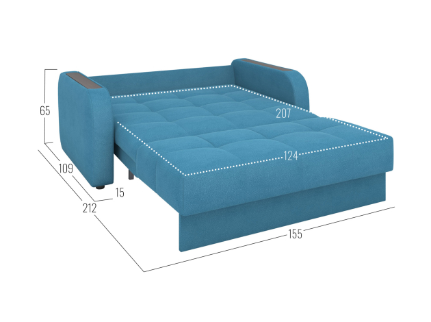Прямой диван Тревис Бирюзовый, велюр 124х207 см Без ящика