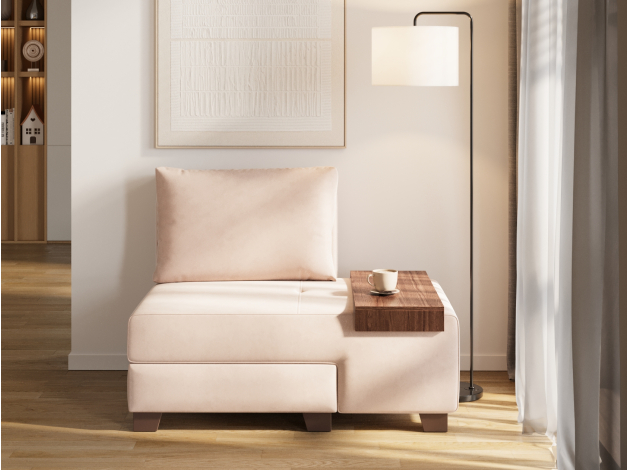 Прямой диван Ленни 2 секции Бежевый, велюр Со столиком
