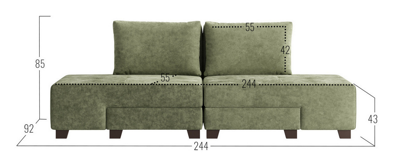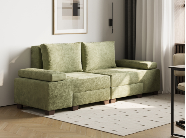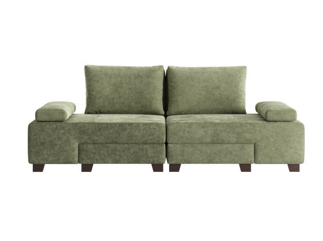 Прямой диван Ленни 2 секции Зеленый, велюр С валиком