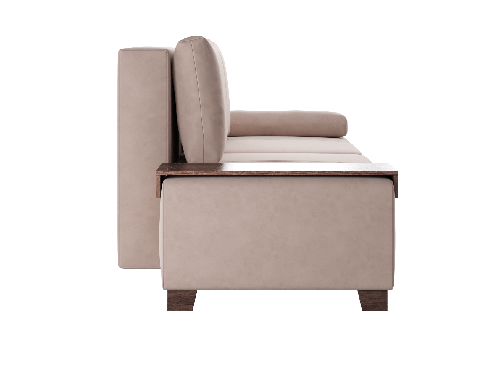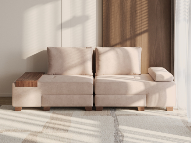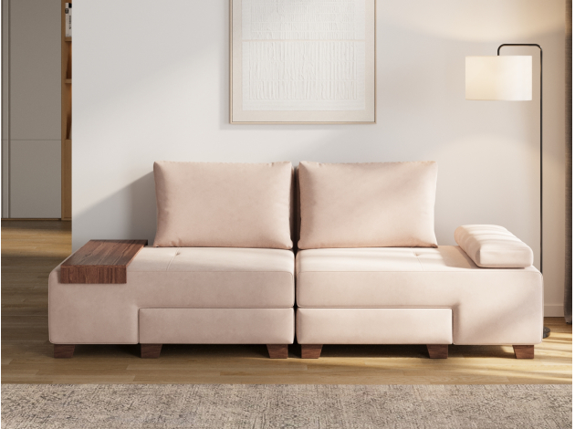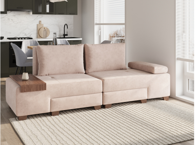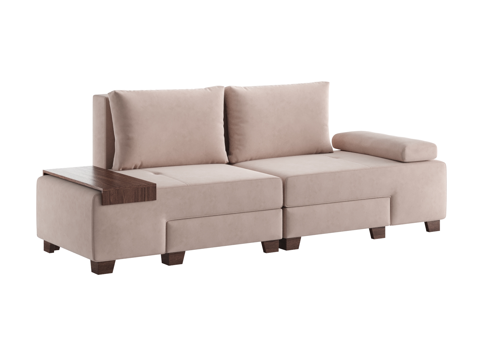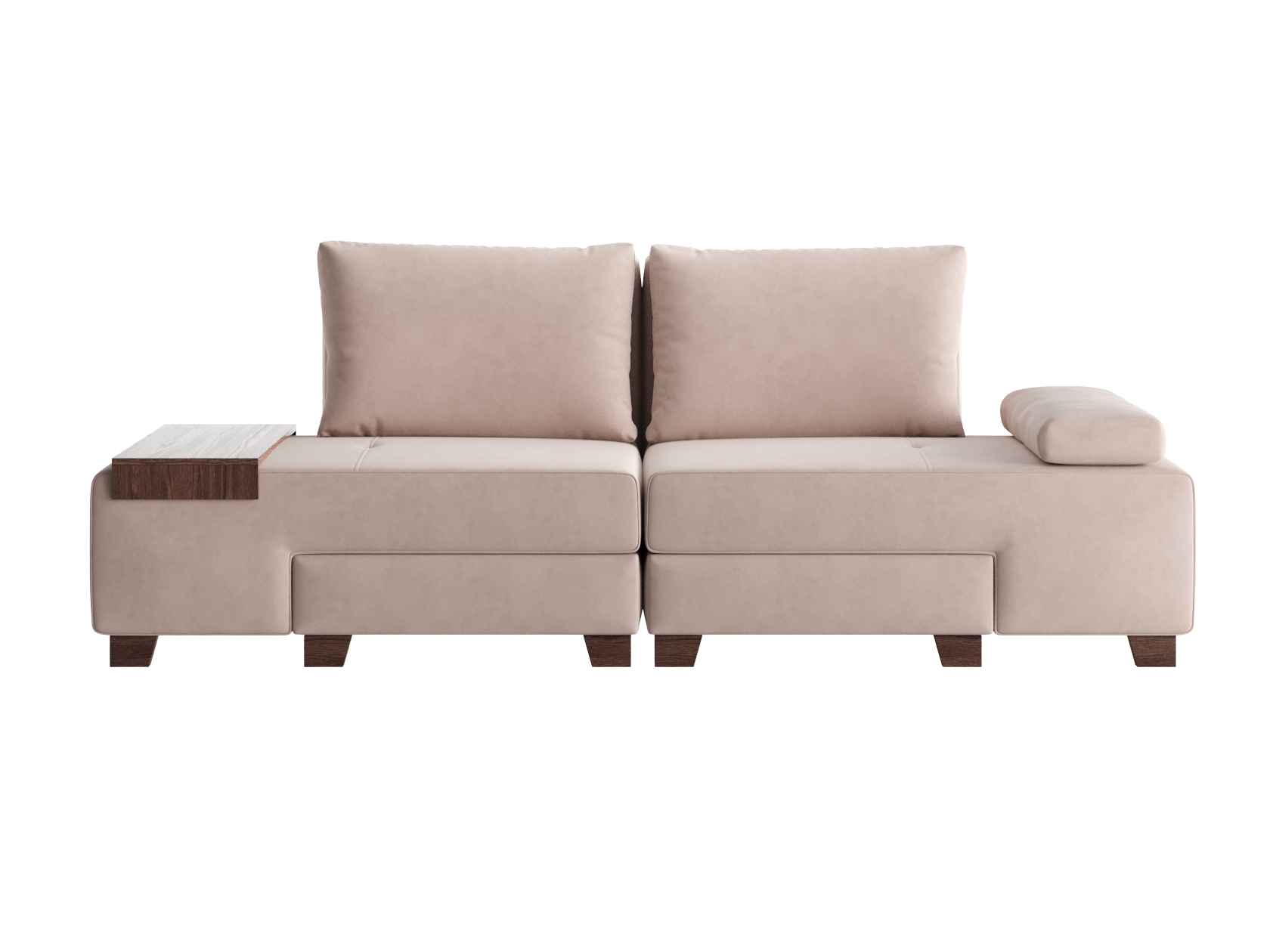 Прямой диван Ленни 2 секции Бежевый, велюр С валиком и столиком