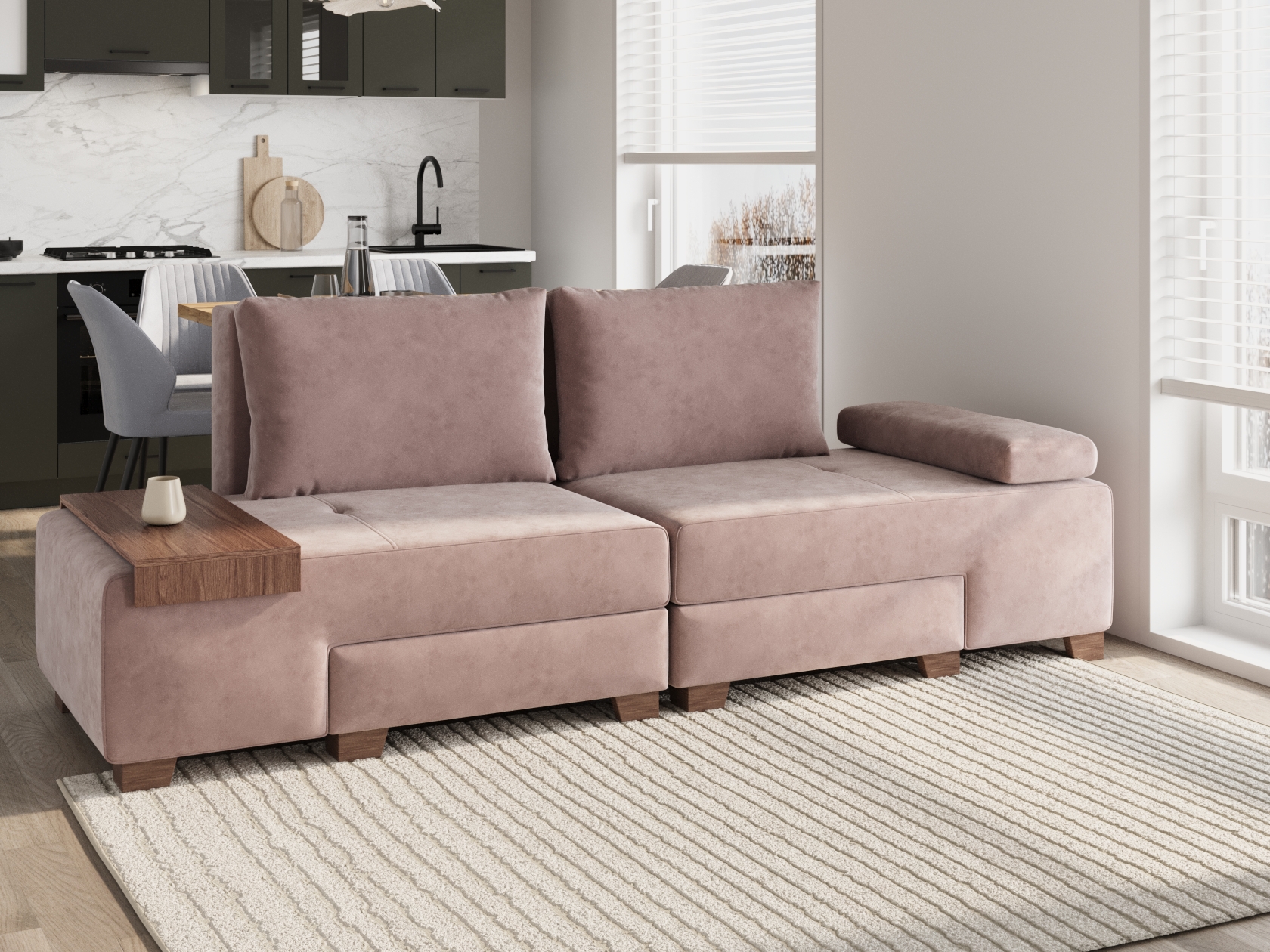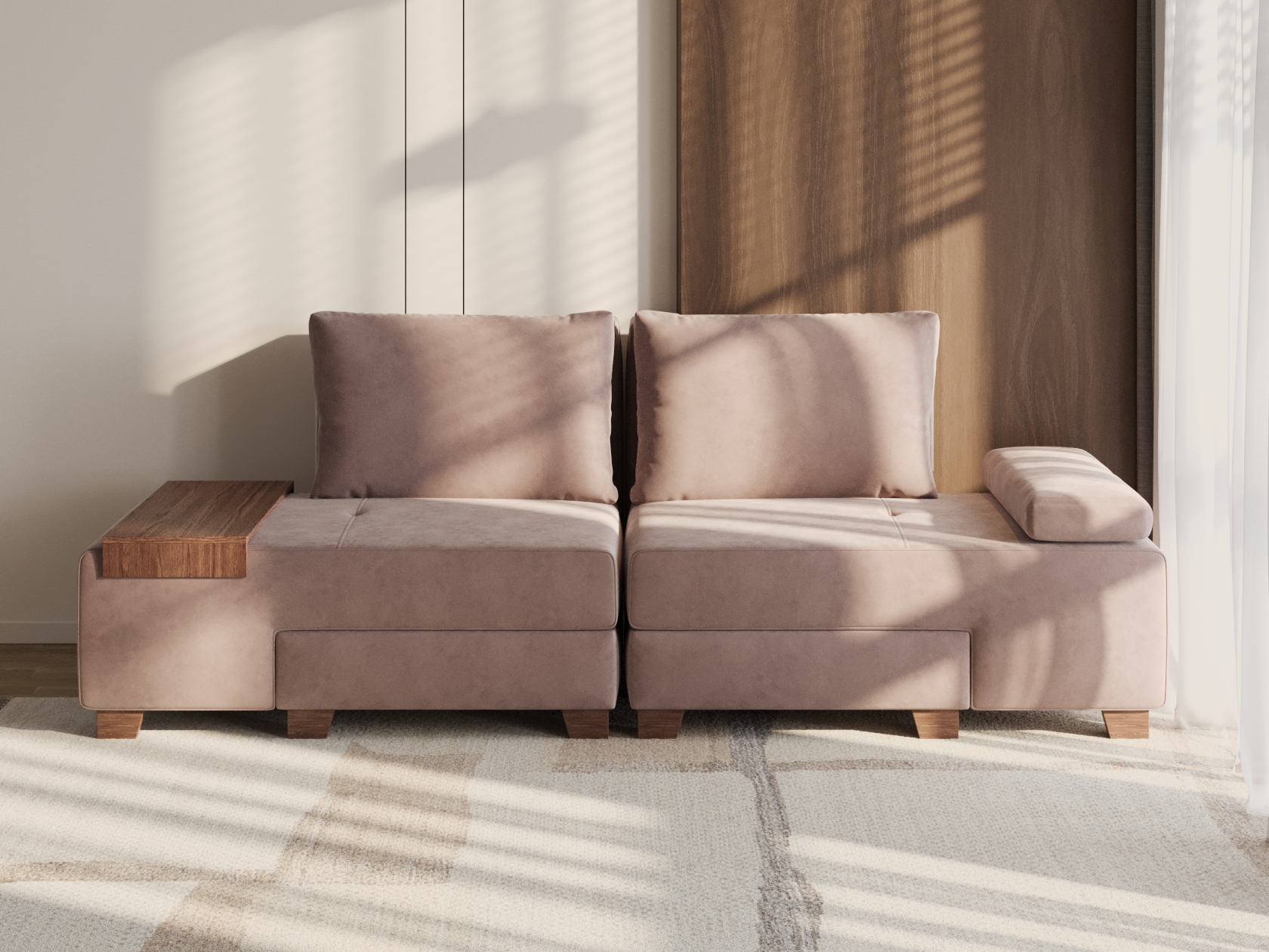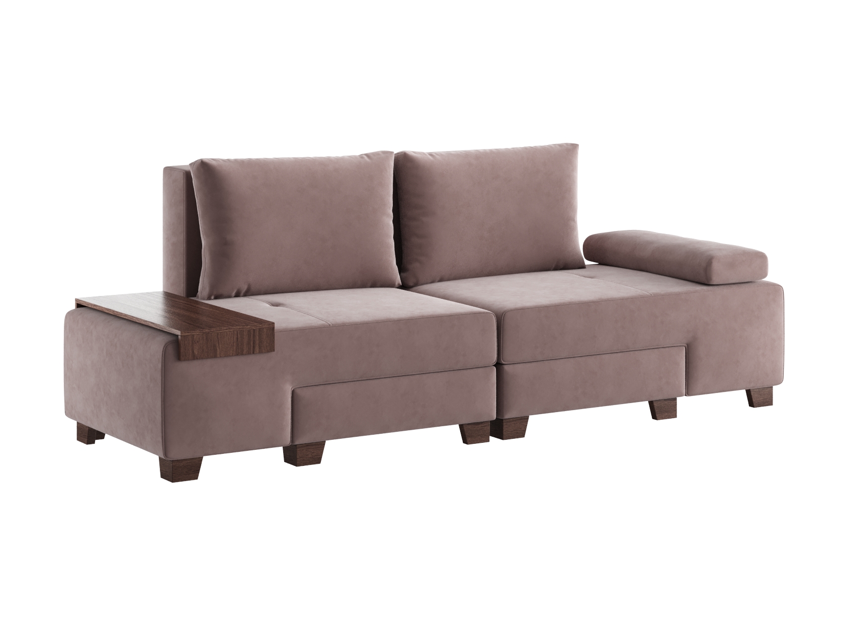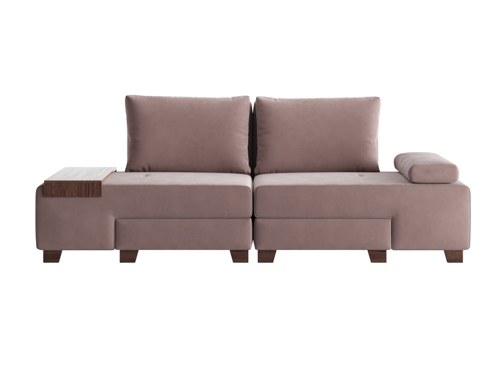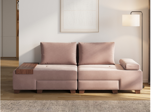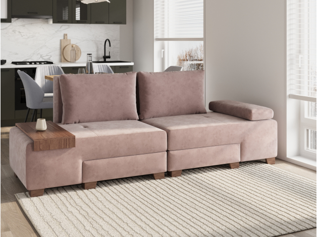 Прямой диван Ленни 2 секции Латте, велюр С валиком и столиком