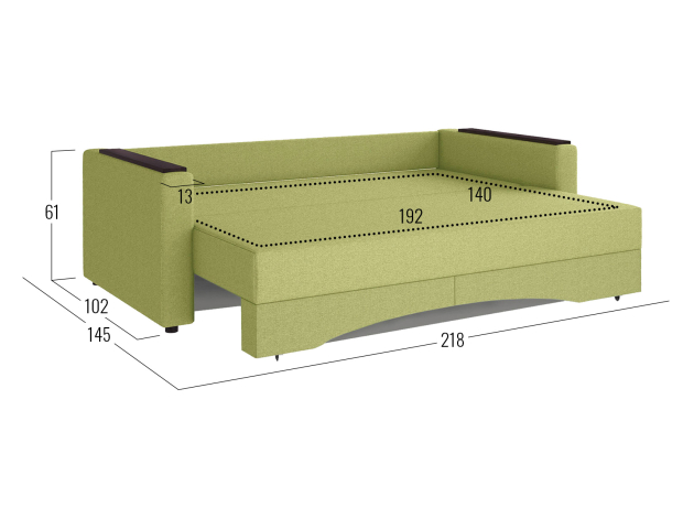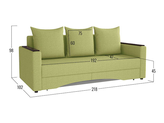Прямой диван Челси с подлокотниками Салатовый, рогожка