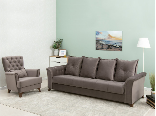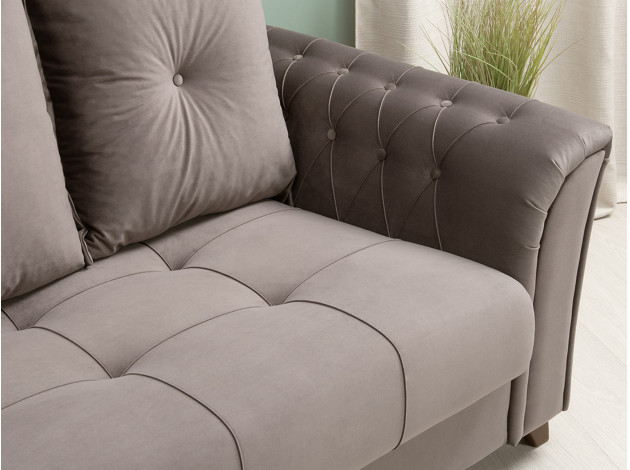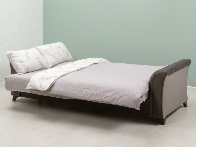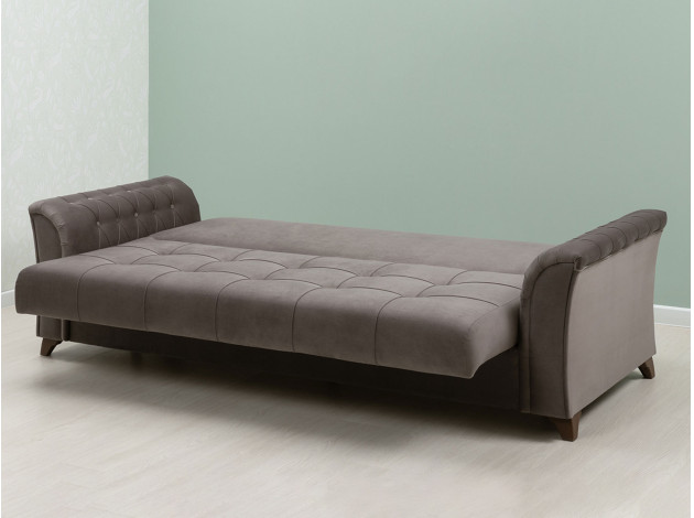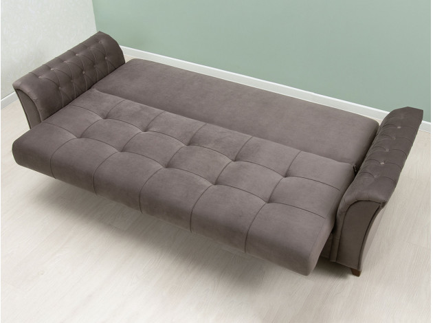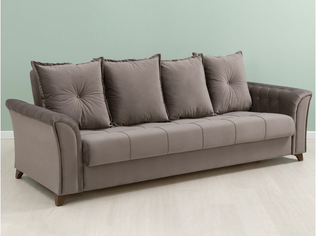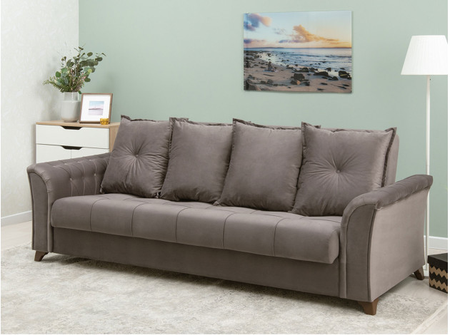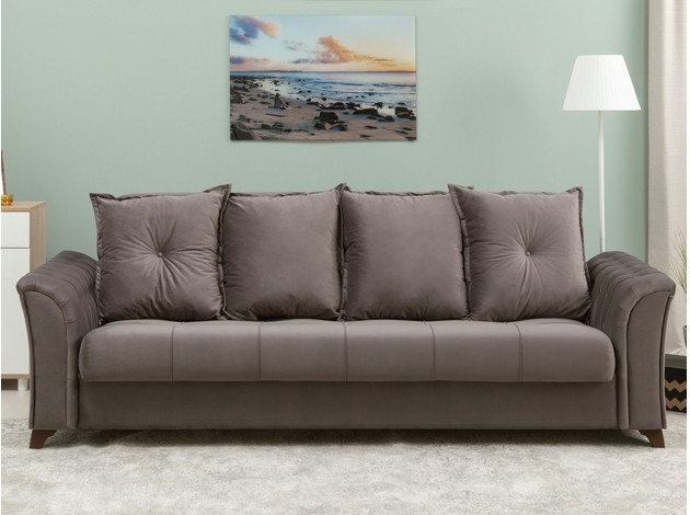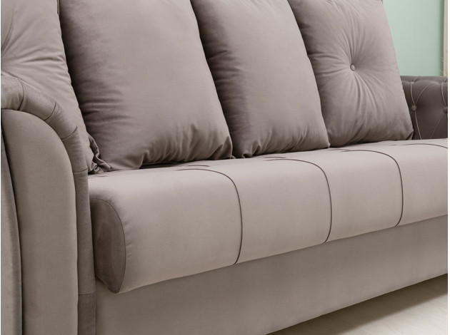 Изящный трехместный прямой диван Ирис имеет элегантно изогнутые подлокотники с каретной стяжкой, придающие особый шарм изделию. В комплекте также присутствуют декоративные мягкие подушки, которые добавят комфорта в ваш отдых. Диван легко раскладывается, образуя удобное место для сна.