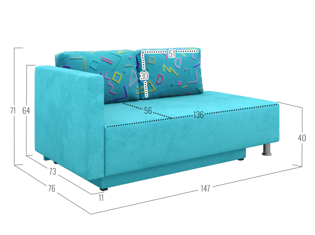 Прямой диван Мэдисон Голубой принт, велюр Универсальное