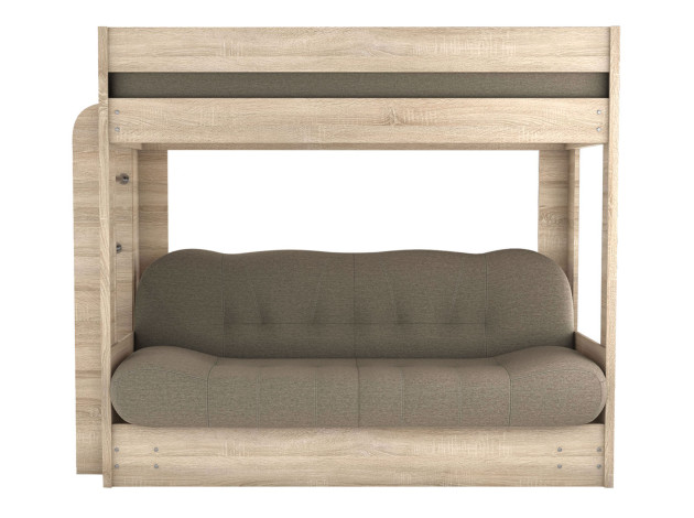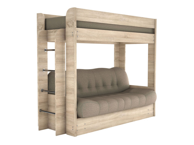 Двухъярусный диван-кровать Твинс — удачное решение для небольшой детской комнаты. На нижнем ярусе можно комфортно отдыхать в дневное время, а за счет того, что диван легко раскладывается, на нем сможет расположиться как ребенок, так и взрослый. Верхний ярус укомплектован матрасом и имеет готовое удобное спальное место для сна. Компактная лестница позволяет без труда подняться на второй ярус, а специальный бортик делает спальное место наверху максимально безопасным.