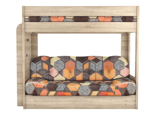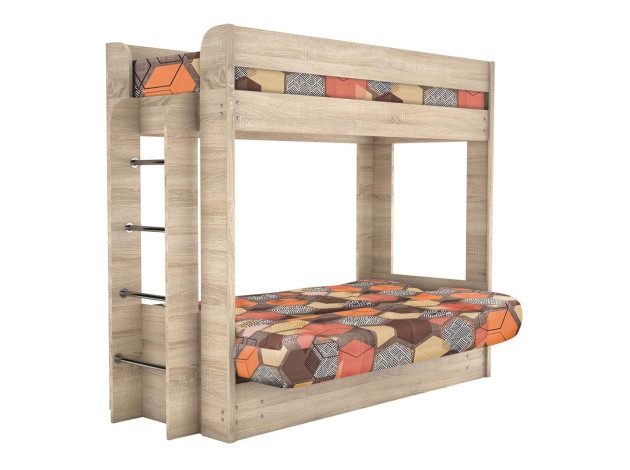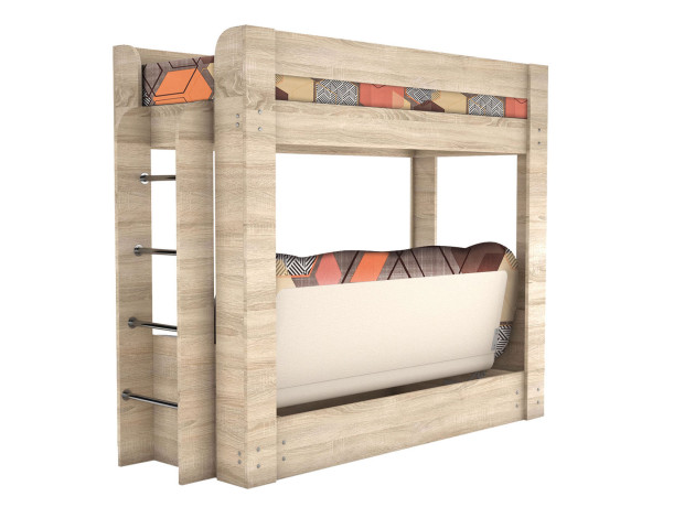 Двухъярусный диван-кровать Твинс — удачное решение для небольшой детской комнаты. На нижнем ярусе можно комфортно отдыхать в дневное время, а за счет того, что диван легко раскладывается, на нем сможет расположиться как ребенок, так и взрослый. Верхний ярус укомплектован матрасом и имеет готовое удобное спальное место для сна. Компактная лестница позволяет без труда подняться на второй ярус, а специальный бортик делает спальное место наверху максимально безопасным.