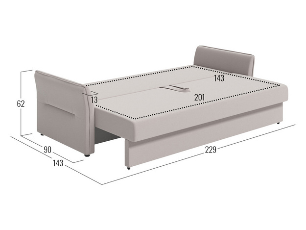 - Посадочное место без подушек (ШхГ): 201 х 79 см.