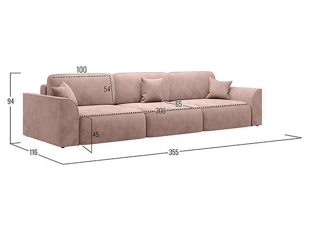 - Декоративные подушки (ВхШ): 34 х 34 см (3 шт.).