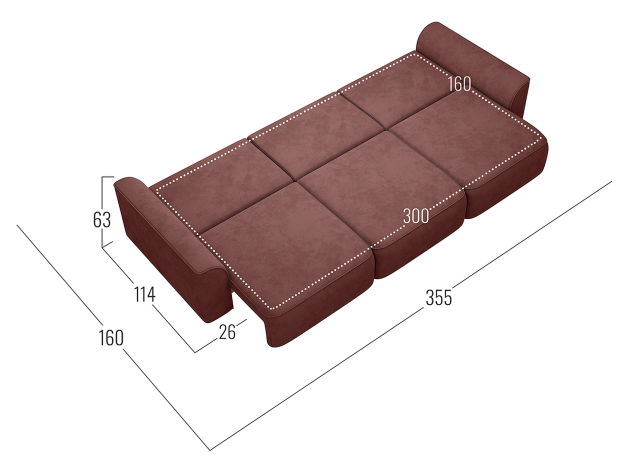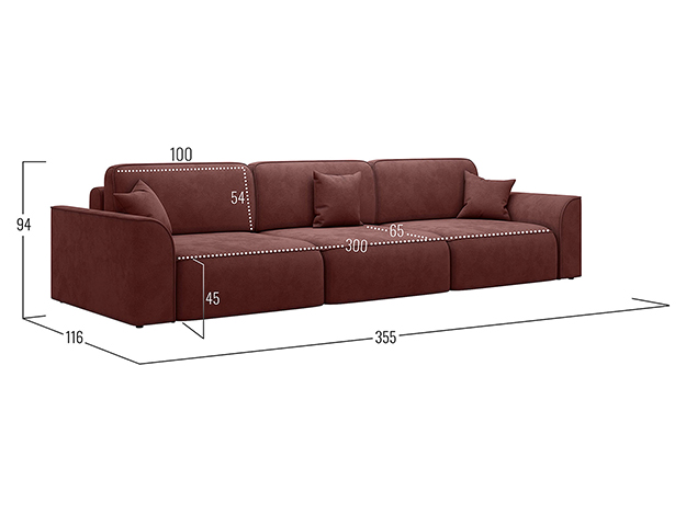 - Декоративные подушки (ВхШ): 34 х 34 см (3 шт.).