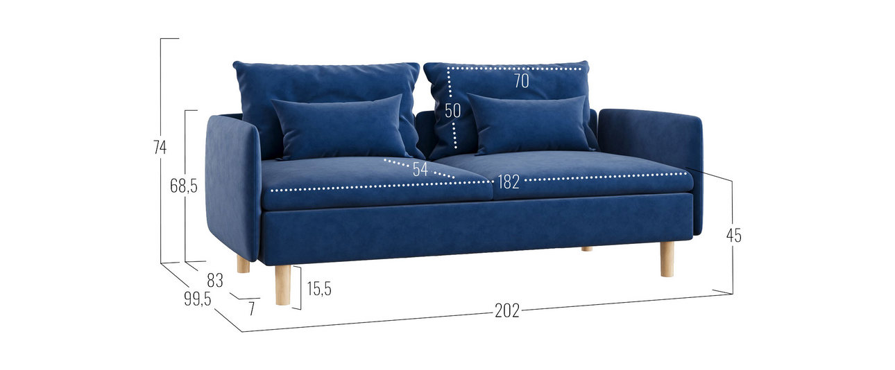- Подлокотники, 2 шт.: 53 х 7 х 83 см.