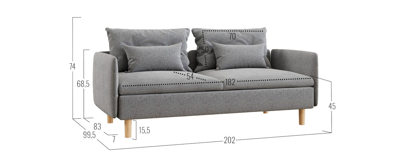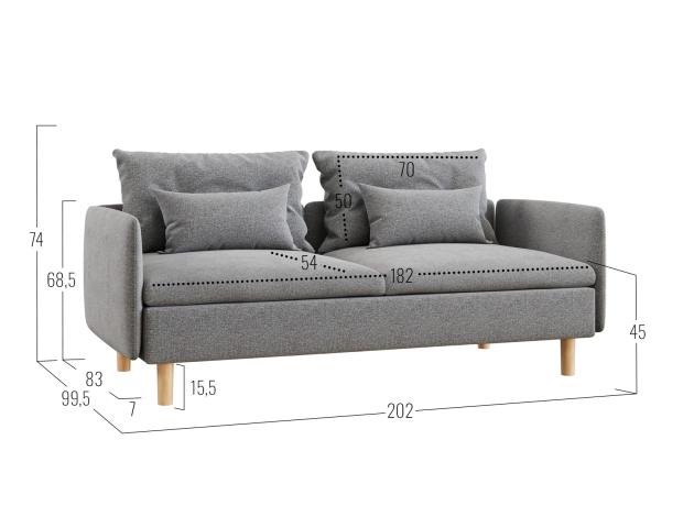- Подлокотники, 2 шт.: 53 х 7 х 83 см.