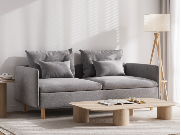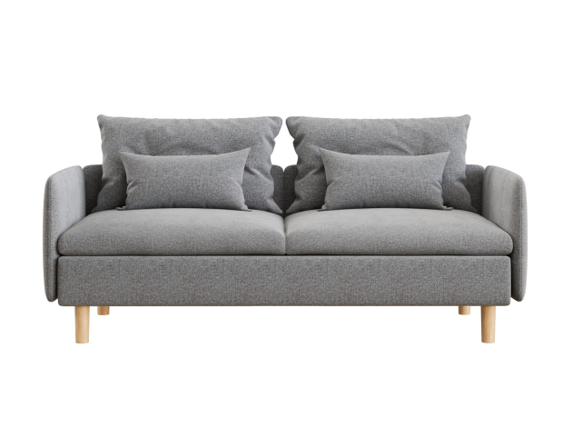 Прямой диван Калисто с подлокотниками компактный и уютный. Невысокая спинка, тонкие подлокотники и деревянные ножки создают визуально легкий силуэт. Модель будет прекрасно смотреться как в небольшой гостиной, так и просторной квартире с открытой планировкой. Со всех сторон используется обивочная ткань, поэтому диван можно поставить в любой точке комнаты. Он отлично комбинируется с другой мягкой мебелью из коллекции.