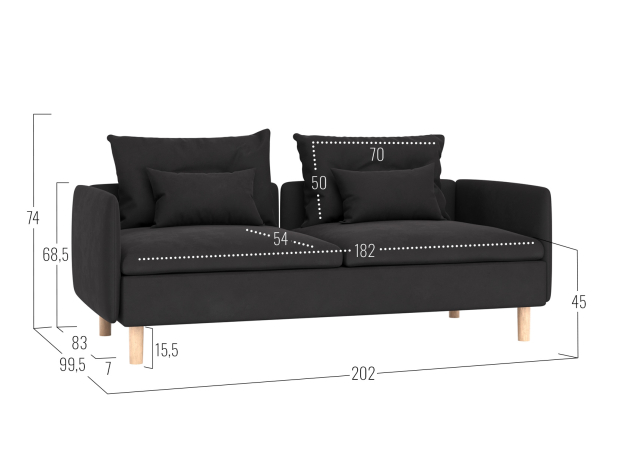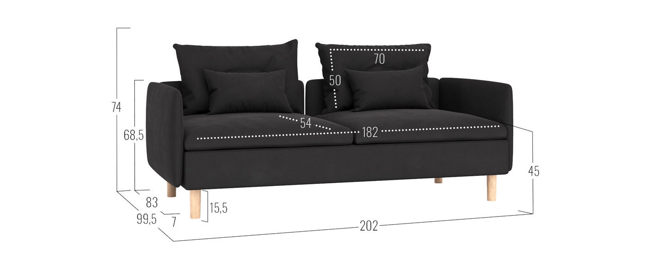 - Подлокотники, 2 шт.: 53 х 7 х 83 см.