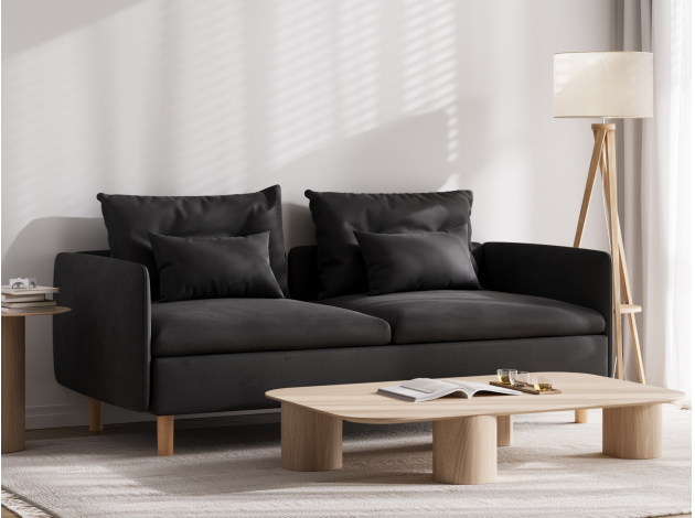 Прямой диван Калисто с подлокотниками компактный и уютный. Невысокая спинка, тонкие подлокотники и деревянные ножки создают визуально легкий силуэт. Модель будет прекрасно смотреться как в небольшой гостиной, так и просторной квартире с открытой планировкой. Со всех сторон используется обивочная ткань, поэтому диван можно поставить в любой точке комнаты. Он отлично комбинируется с другой мягкой мебелью из коллекции.