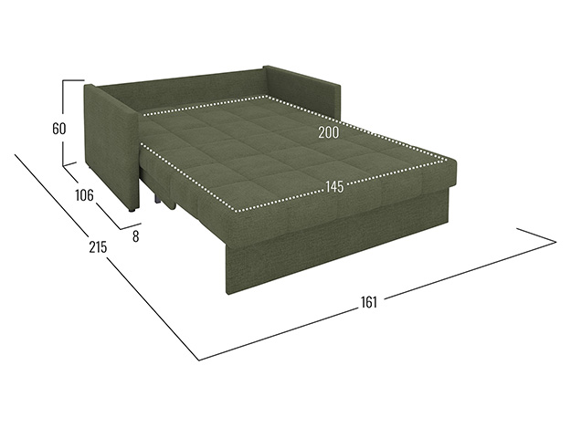 - Посадочное место (ШхГ): 145 х 60 см / 160 х 60 см.