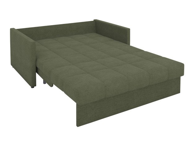 Диван легко раскладывается благодаря простому и надежному механизму трансформации, образуя ровное спальное место. Металлокаркас обеспечивает прочность и устойчивость к нагрузкам, а высокий матрас идеально подходит для ежедневного сна и может сравниться по комфорту с полноценной кроватью.