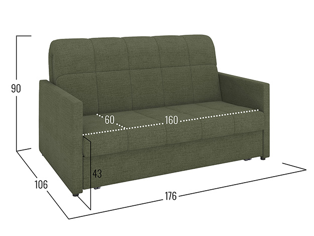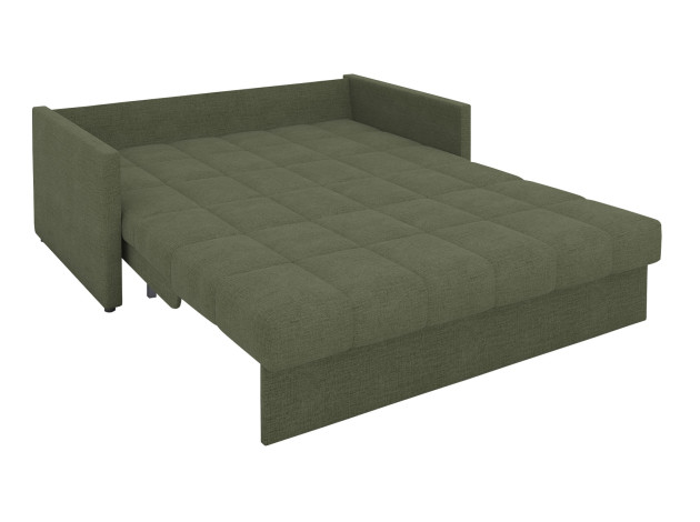 Диван легко раскладывается благодаря простому и надежному механизму трансформации, образуя ровное спальное место. Металлокаркас обеспечивает прочность и устойчивость к нагрузкам, а высокий матрас идеально подходит для ежедневного сна и может сравниться по комфорту с полноценной кроватью.