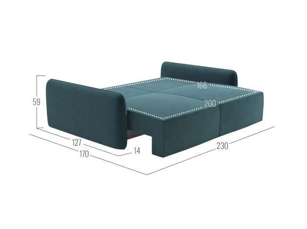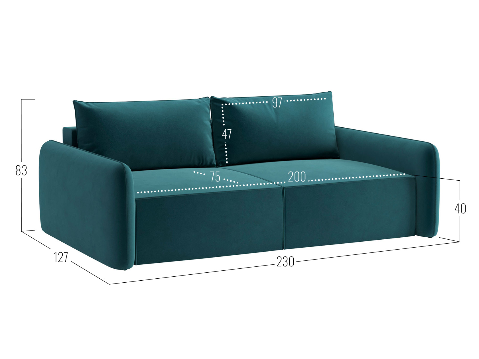 - Посадочное место без подушек (ШхГ): 200 х 100 см.