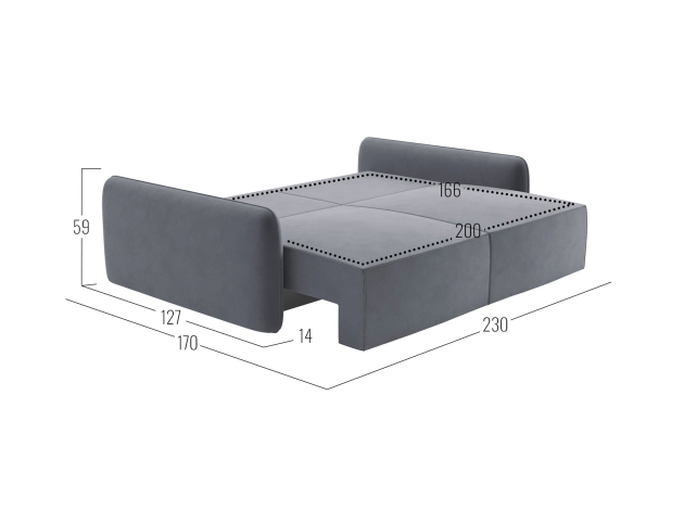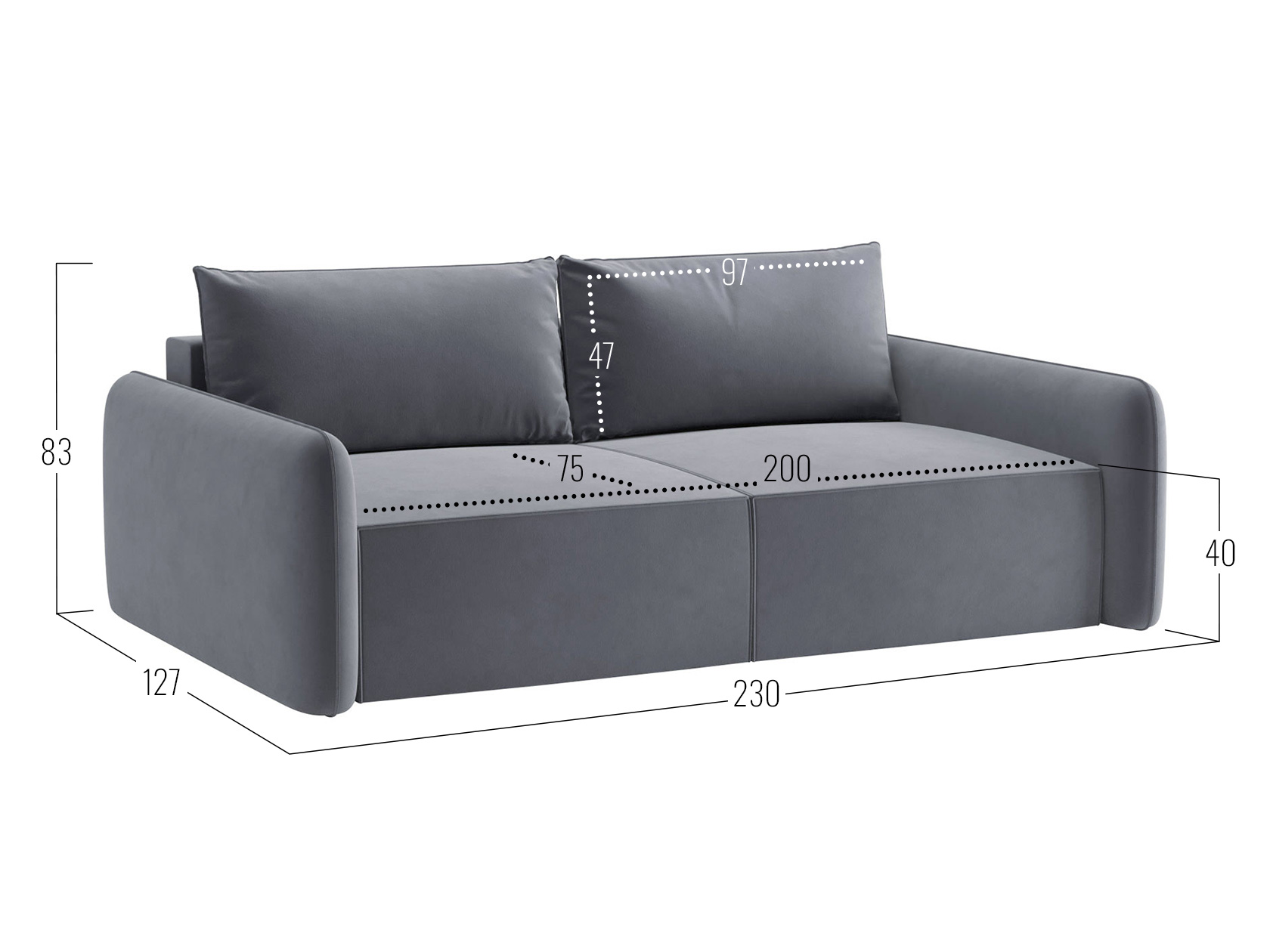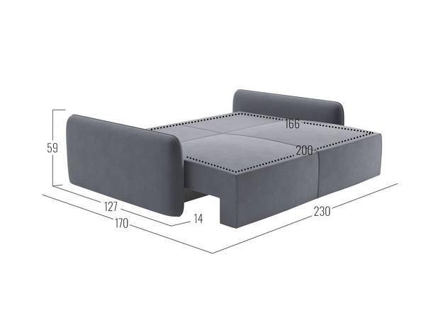 - Посадочное место без подушек (ШхГ): 200 х 100 см.