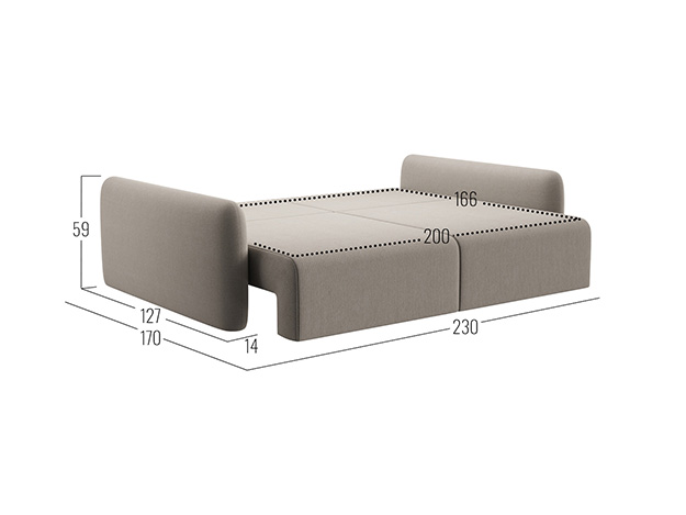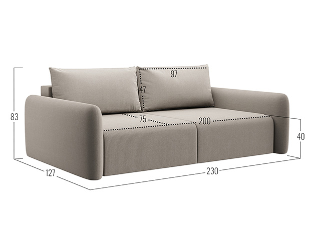 - Посадочное место без подушек (ШхГ): 200 х 100 см.