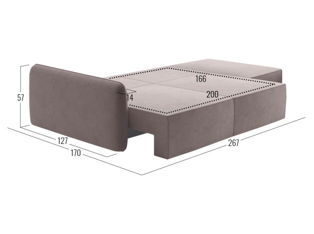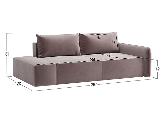 - Посадочное место без подушки (ШхГ): 250 х 100 см.