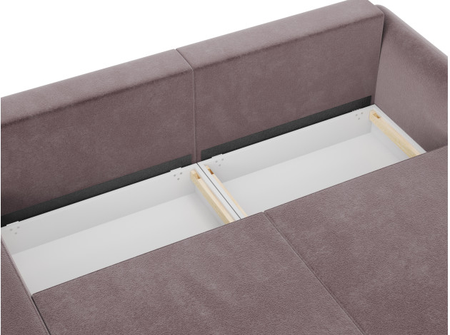 Глубокая посадка позволяет удобно расположиться во время отдыха, а надежный механизм легко превращает диван в просторную кровать с ровным спальным местом. Высокий матрас на основе блока независимых пружин отлично подходит для ежедневного сна. Для хранения постельных принадлежностей и сезонных вещей предусмотрен вместительный бельевой ящик.