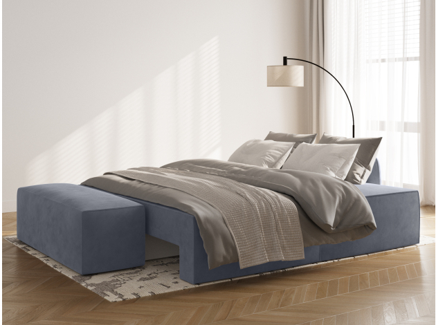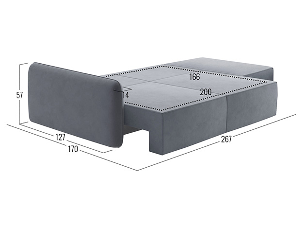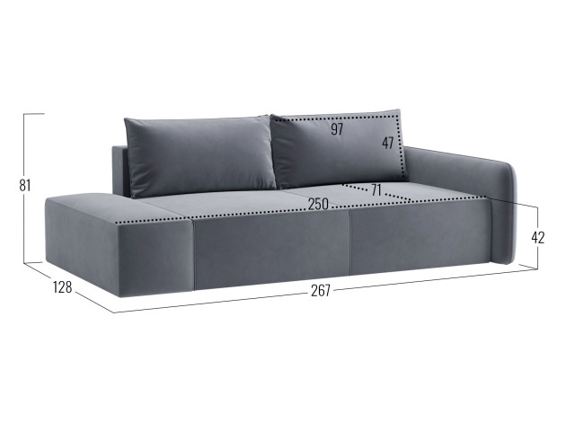 Прямой диван Портленд с банкеткой Серый, велюр Слева