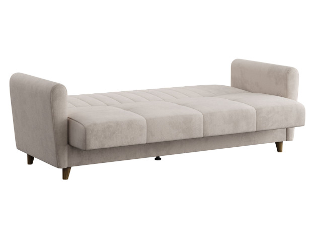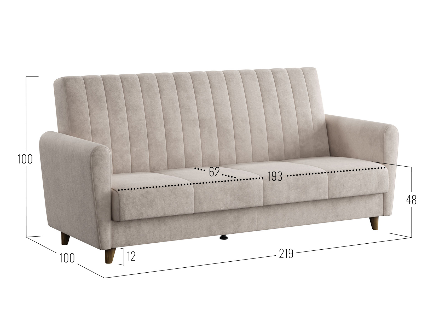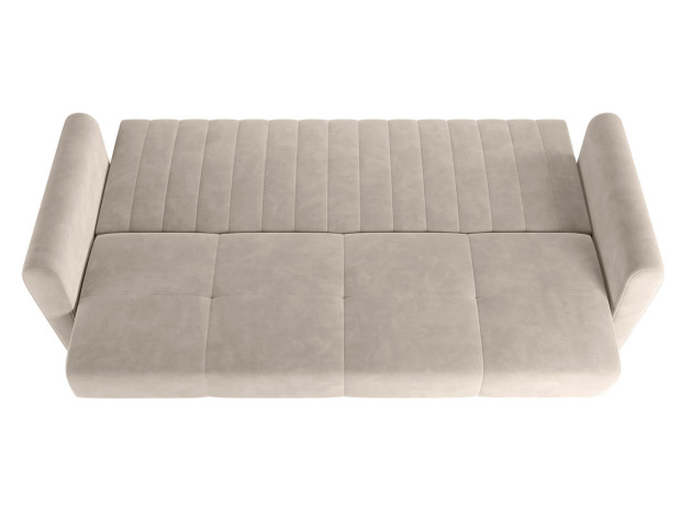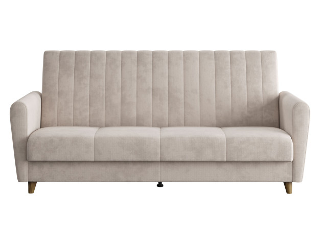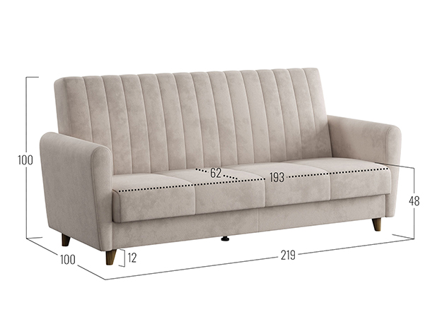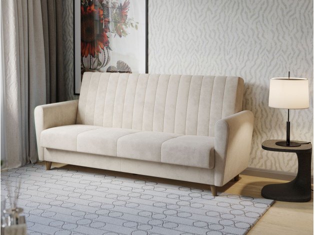 Прямой диван Синди — стильная и комфортная модель для отдыха и ежедневного сна. Высокая спинка с вертикальной стежкой позволяет удобно расположиться человеку любого роста. Диван легко складывается и раскладывается, превращаясь в полноценную кровать. В качестве наполнения используется независимый пружинный блок, который обеспечивает ортопедическую поддержку тела. Для постельных принадлежностей есть небольшой бельевой короб. Ножки делают конструкцию визуально легче и позволяют использовать для уборки робот-пылесос.