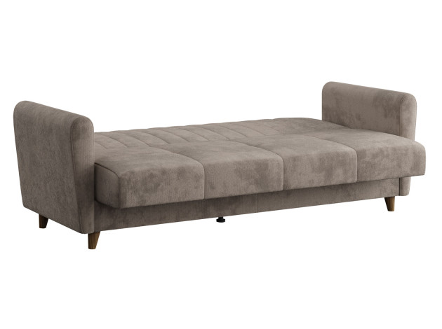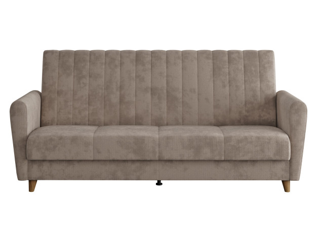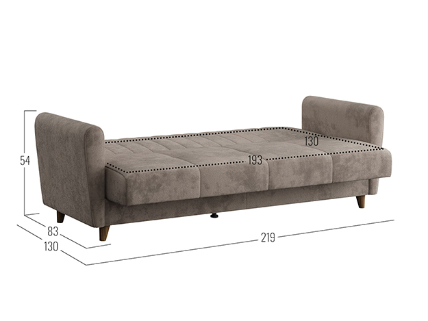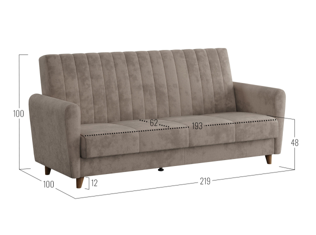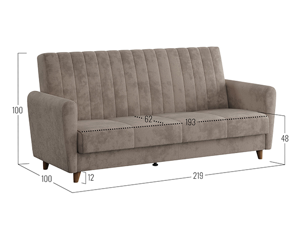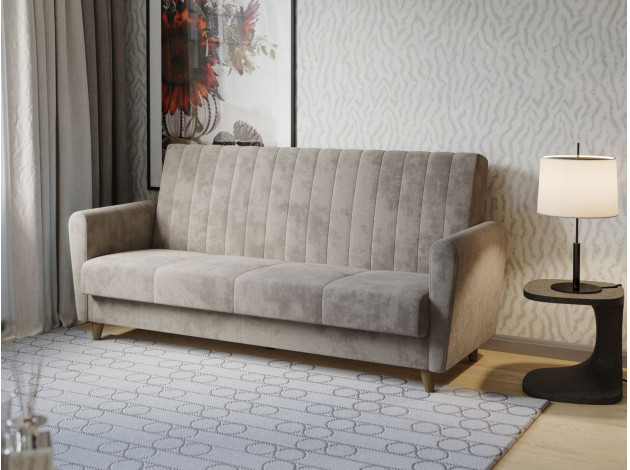 Прямой диван Синди — стильная и комфортная модель для отдыха и ежедневного сна. Высокая спинка с вертикальной стежкой позволяет удобно расположиться человеку любого роста. Диван легко складывается и раскладывается, превращаясь в полноценную кровать. В качестве наполнения используется независимый пружинный блок, который обеспечивает ортопедическую поддержку тела. Для постельных принадлежностей есть небольшой бельевой короб. Ножки делают конструкцию визуально легче и позволяют использовать для уборки робот-пылесос.