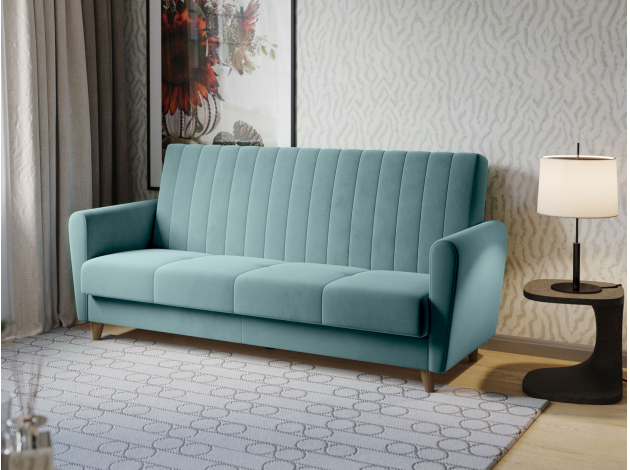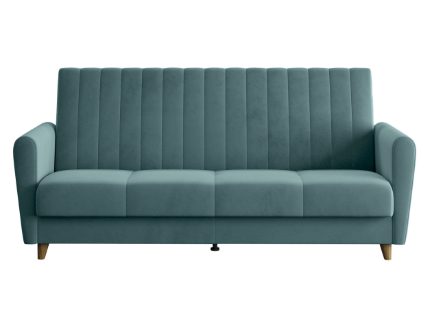 Прямой диван Синди — стильная и комфортная модель для отдыха и ежедневного сна. Высокая спинка с вертикальной стежкой позволяет удобно расположиться человеку любого роста. Диван легко складывается и раскладывается, превращаясь в полноценную кровать. В качестве наполнения используется независимый пружинный блок, который обеспечивает ортопедическую поддержку тела. Для постельных принадлежностей есть небольшой бельевой короб. Ножки делают конструкцию визуально легче и позволяют использовать для уборки робот-пылесос.