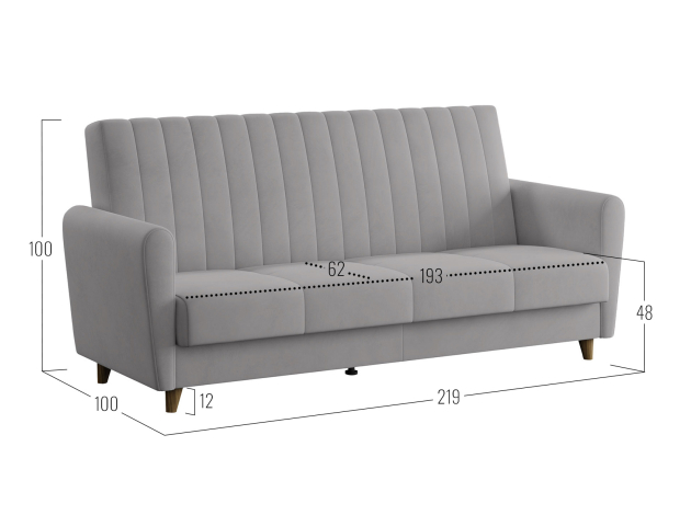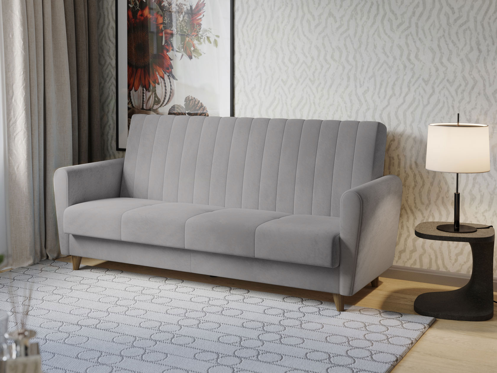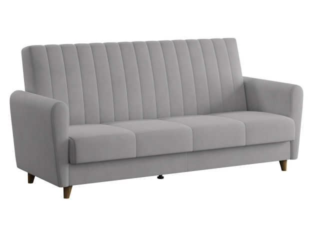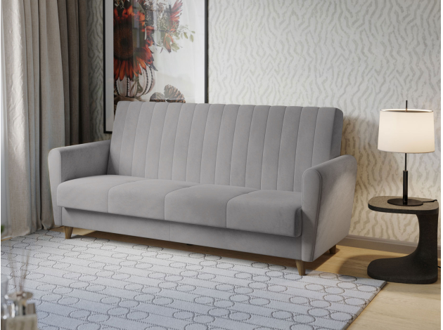 Прямой диван Синди — стильная и комфортная модель для отдыха и ежедневного сна. Высокая спинка с вертикальной стежкой позволяет удобно расположиться человеку любого роста. Диван легко складывается и раскладывается, превращаясь в полноценную кровать. В качестве наполнения используется независимый пружинный блок, который обеспечивает ортопедическую поддержку тела. Для постельных принадлежностей есть небольшой бельевой короб. Ножки делают конструкцию визуально легче и позволяют использовать для уборки робот-пылесос.