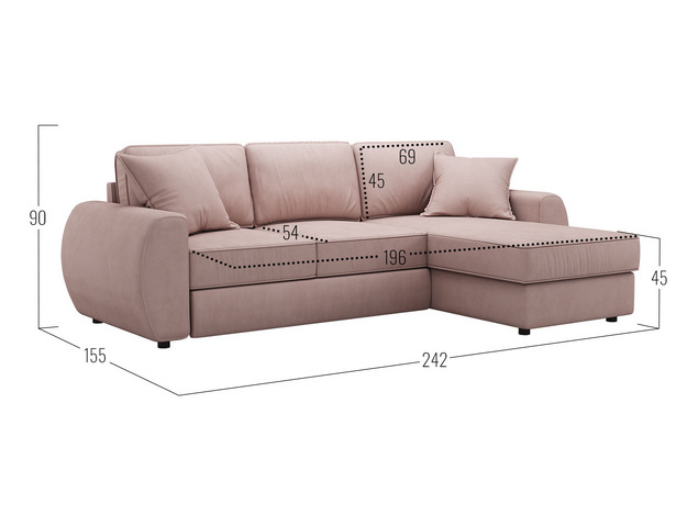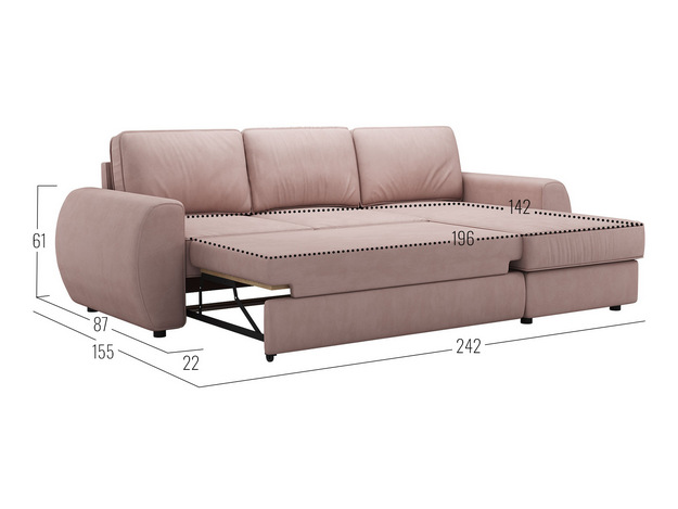 Угловой диван Валери с оттоманкой прекрасно дополнит интерьер квартиры в классическом или современном стиле. Декоративные подушки позволяют регулировать глубину посадки, обеспечивая индивидуальный комфорт сидящего. Трехместная модель оснащена удобным механизмом трансформации, благодаря чему легко превращается в полноценное спальное место.