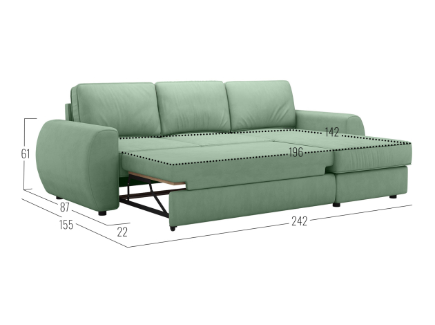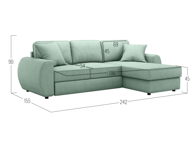 - Посадочное место без подушек (ШхГ): 196 х 68 см.