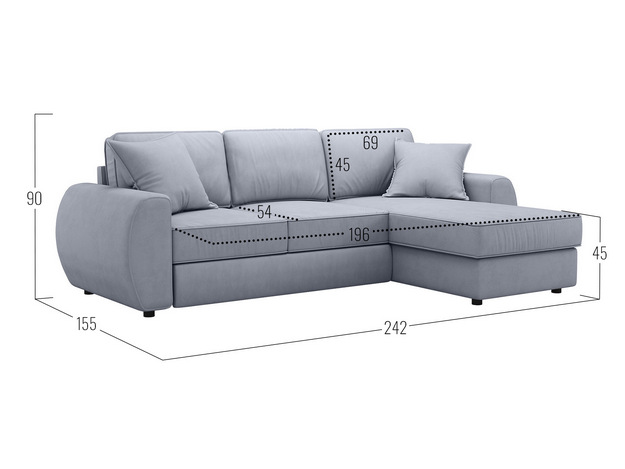 - Посадочное место без подушек (ШхГ): 196 х 68 см.