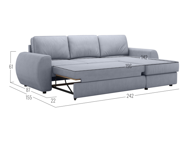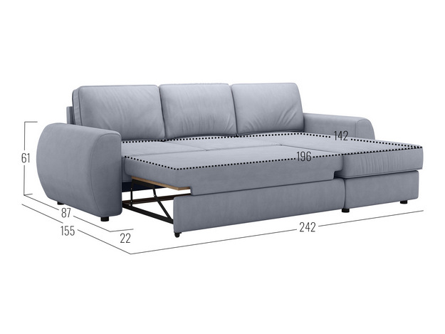 Угловой диван Валери с оттоманкой прекрасно дополнит интерьер квартиры в классическом или современном стиле. Декоративные подушки позволяют регулировать глубину посадки, обеспечивая индивидуальный комфорт сидящего. Трехместная модель оснащена удобным механизмом трансформации, благодаря чему легко превращается в полноценное спальное место.