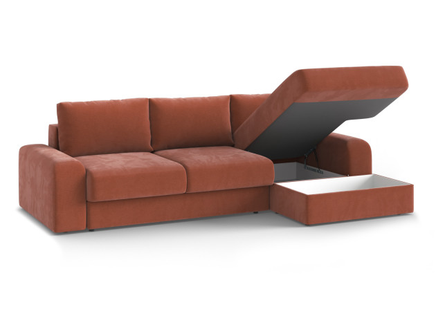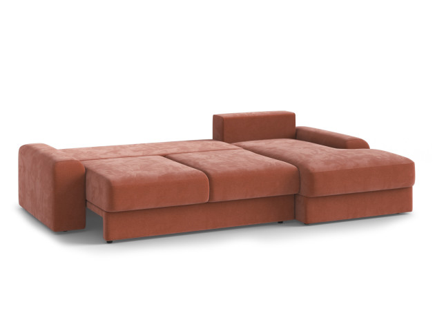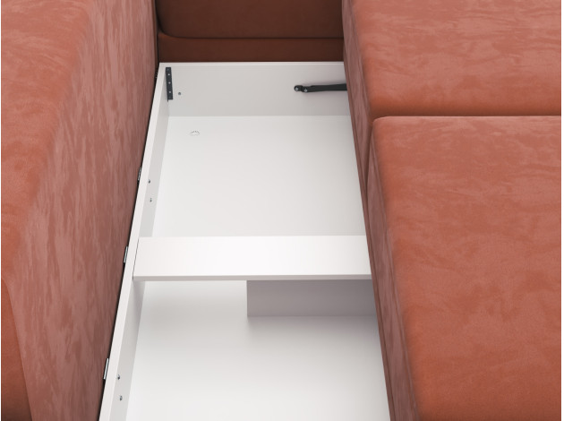 Чтобы разложить диван, не требуется особых усилий. Он легко превращается в просторную кровать, которая подходит для ежедневного сна. В оттоманке и основной части предусмотрены ящики для белья и постельных принадлежностей.