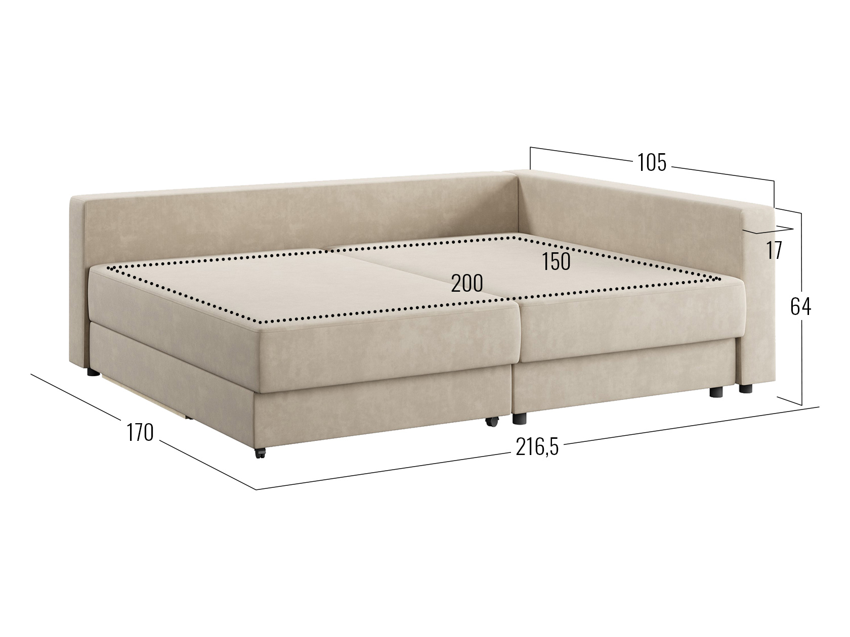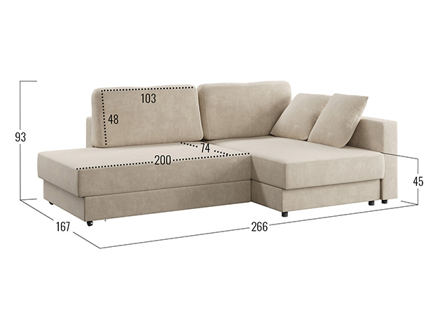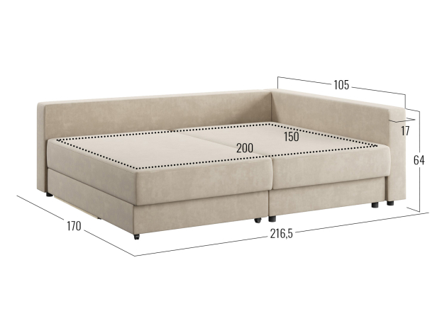 - Посадочное место без подушек (ШхГ): 200 х 99,5 см.