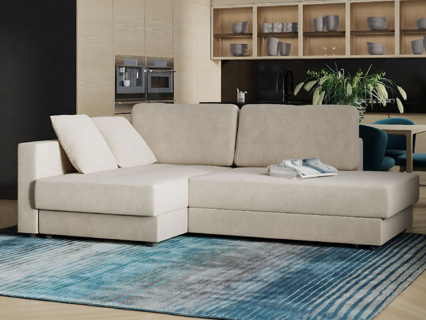 Угловой диван Бостон станет излюбленной зоной отдыха всех домочадцев. Мягкие приспинные подушки способствуют комфортной посадке. Со всех сторон модель обита основной тканью, а значит, ее можно использовать для зонирования комнаты. Поворотный механизм на колесиках быстро организует ровное спальное место. Небольшая спинка защищает от соприкосновения со стеной. В оттоманке предусмотрен короб для хранения постельных принадлежностей. Благодаря приятной на ощупь и устойчивой к износу обивке диван долгое время сохраняет безупречный вид.