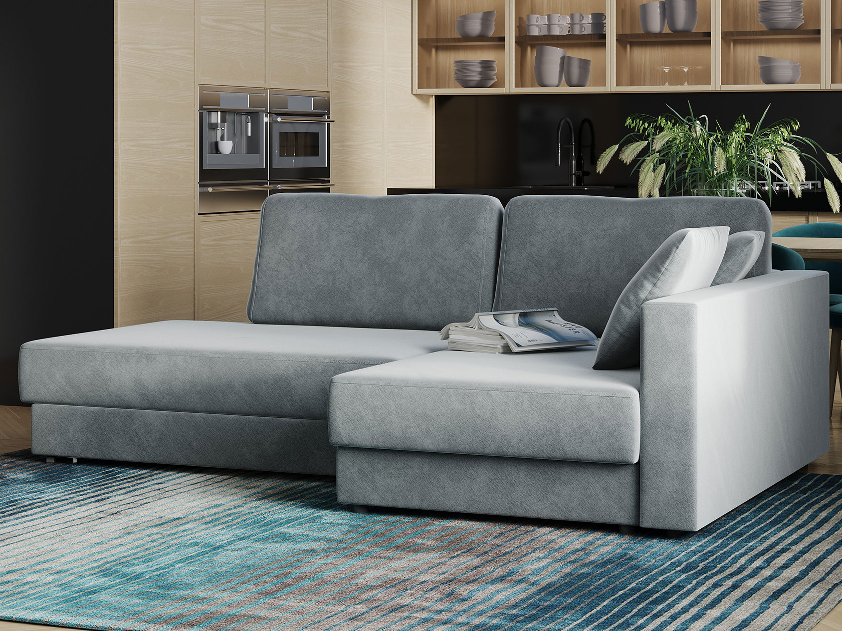 Угловой диван Бостон станет излюбленной зоной отдыха всех домочадцев. Мягкие приспинные подушки способствуют комфортной посадке. Со всех сторон модель обита основной тканью, а значит, ее можно использовать для зонирования комнаты. Поворотный механизм на колесиках быстро организует ровное спальное место. Небольшая спинка защищает от соприкосновения со стеной. В оттоманке предусмотрен короб для хранения постельных принадлежностей. Благодаря приятной на ощупь и устойчивой к износу обивке диван долгое время сохраняет безупречный вид.