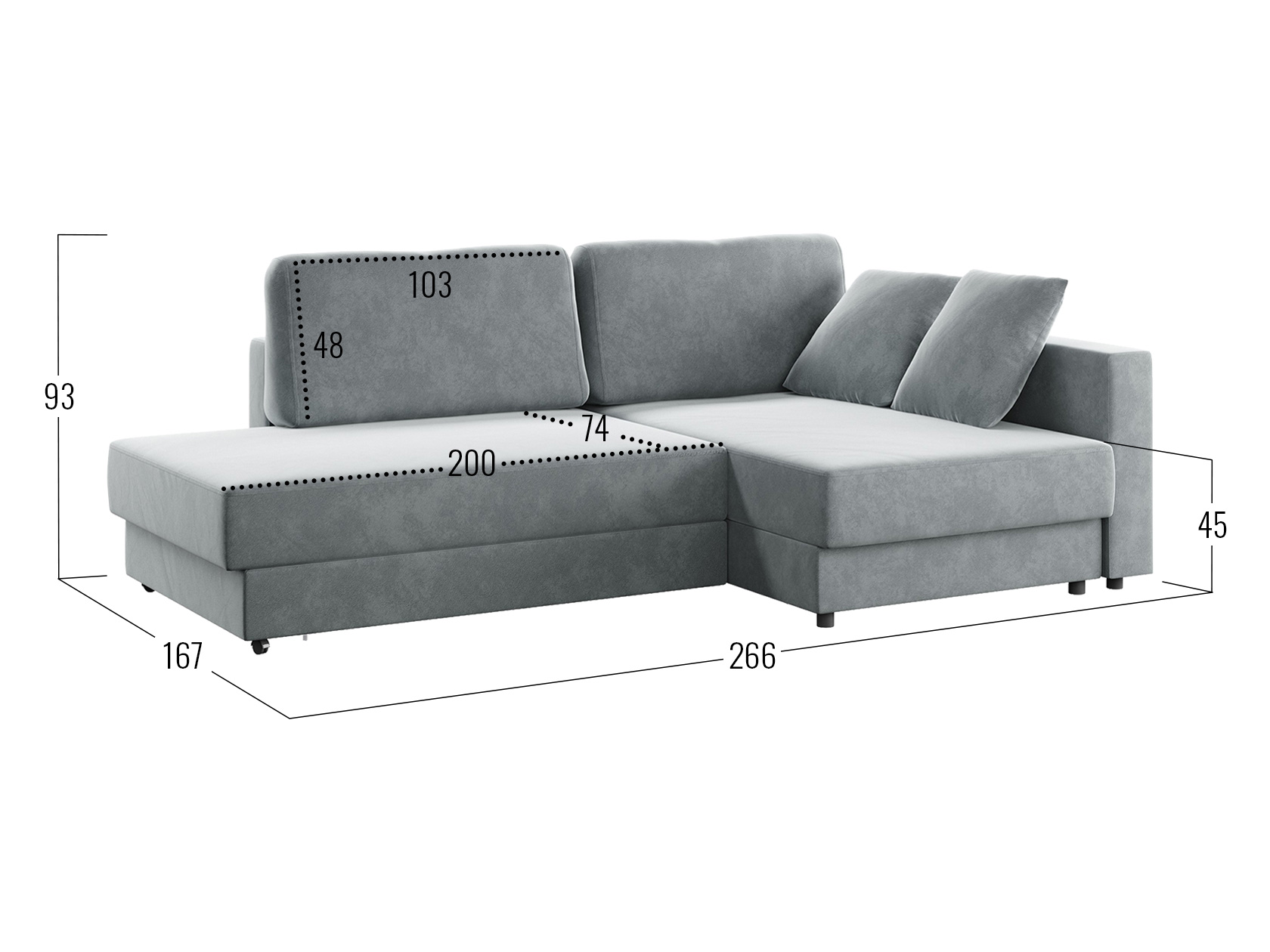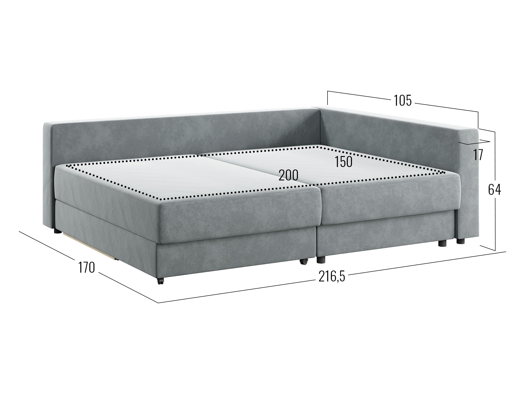 - Посадочное место без подушек (ШхГ): 200 х 99,5 см.