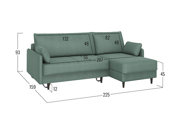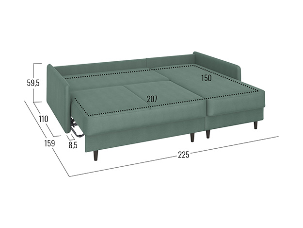 - Посадочное место без подушек (ШхГ): 207 х 84 см.
