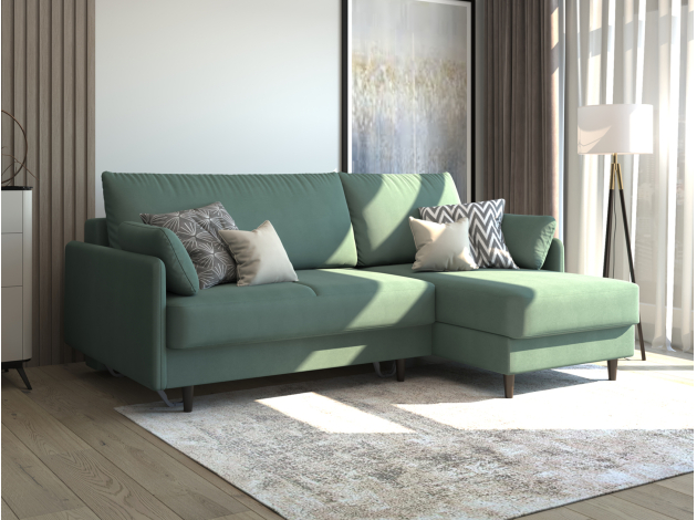 Угловой диван Эдриан — стильное и функциональное дополнение современного интерьера. Оттоманка добавляет удобства во время отдыха и увеличивает пространство для хранения благодаря встроенному коробу для белья. Прочный металлокаркас обеспечивает долгий срок службы мебели, а съемный чехол облегчает уход за обивкой. С помощью простого механизма трансформации из дивана удобно сделать просторное спальное место. Специальная планка защищает от контакта со стеной. Высокие ножки упрощают уборку напольного покрытия.