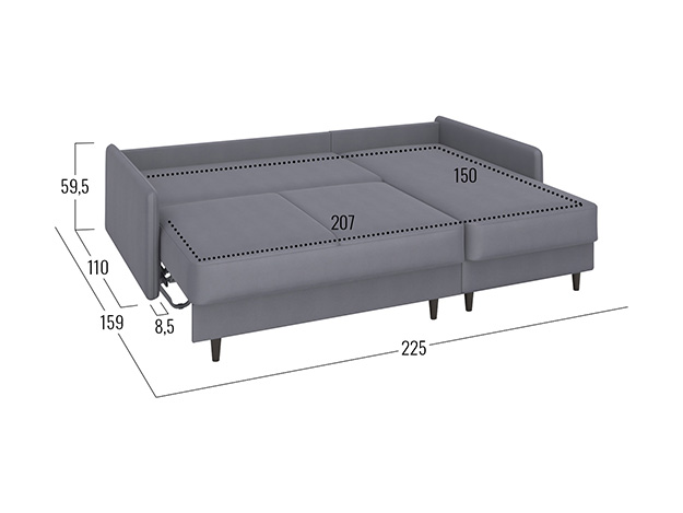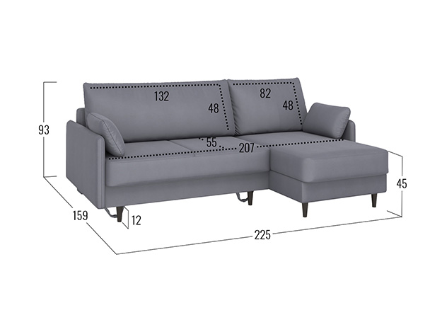 Угловой диван Эдриан Антрацит, велюр Универсальное