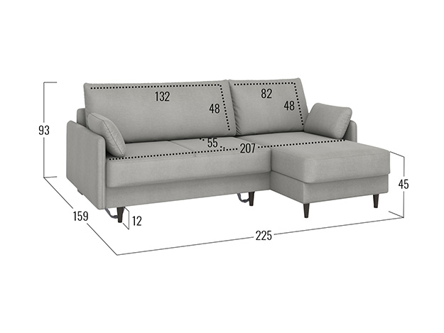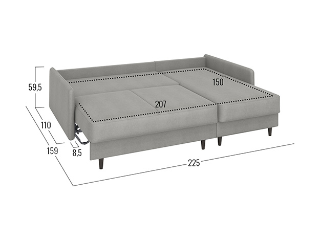 Угловой диван Эдриан Стальной, велюр Универсальное