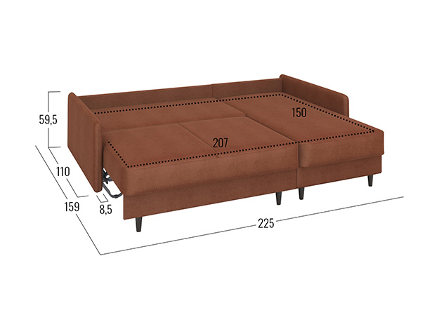 93 × 225 × 159 см