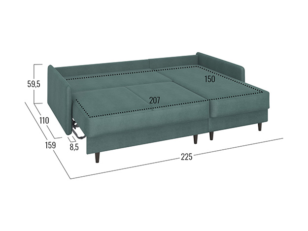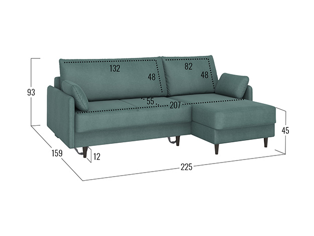 - Посадочное место без подушек (ШхГ): 207 х 84 см.