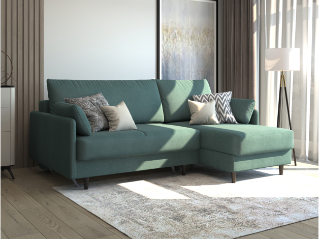 Угловой диван Эдриан — стильное и функциональное дополнение современного интерьера. Оттоманка добавляет удобства во время отдыха и увеличивает пространство для хранения благодаря встроенному коробу для белья. Прочный металлокаркас обеспечивает долгий срок службы мебели, а съемный чехол облегчает уход за обивкой. С помощью простого механизма трансформации из дивана удобно сделать просторное спальное место. Специальная планка защищает от контакта со стеной. Высокие ножки упрощают уборку напольного покрытия.