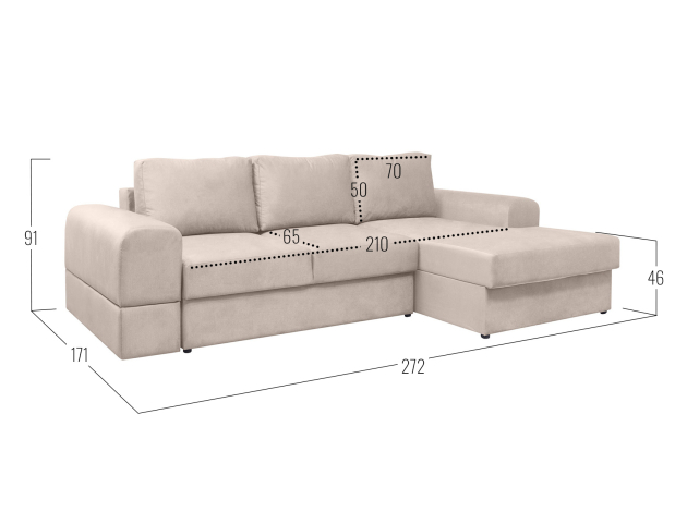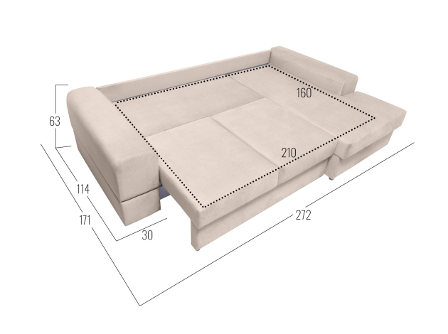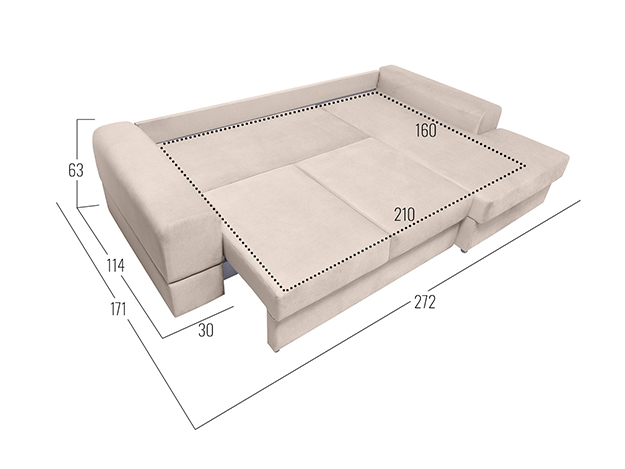 - Посадочное место без подушек (ШхГ): 210 х 90 см.